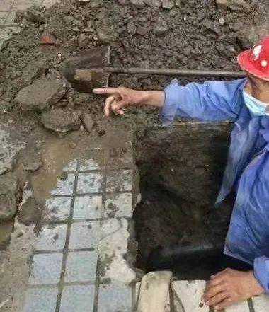 接著報單、通知維修隊開挖,“功夫不負有心人”,當(dāng)維修工作坑挖至地面一下約1米左右的地方,水流上涌,這段DN110的PE管漏點被精準(zhǔn)找到維修。看著維修人員停水、維修、恢復(fù)供水一氣呵成,用戶們一顆懸著的心也終于放下。